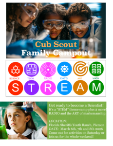 The area Scouting Program is organizing a Science/Technology/Engineering/Math (STEM) event for Cub Scouts (young children) entitled SCOUT STREAM on March 7 from 0930 to 1630.